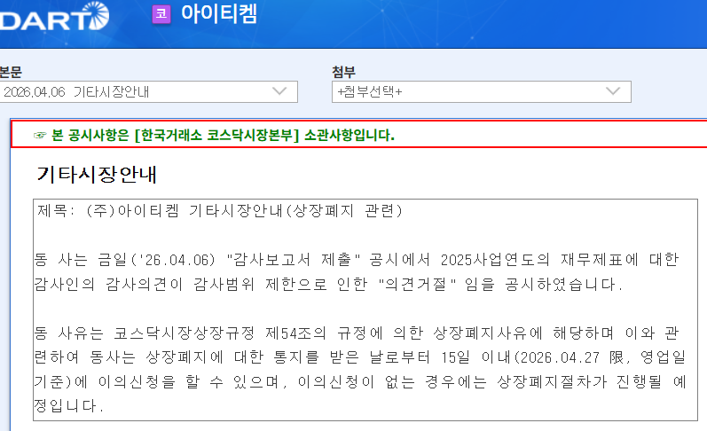 4월 6일 전자공시시스템에 올라온 상폐 관련 안내문... ㄴㅇㄱ