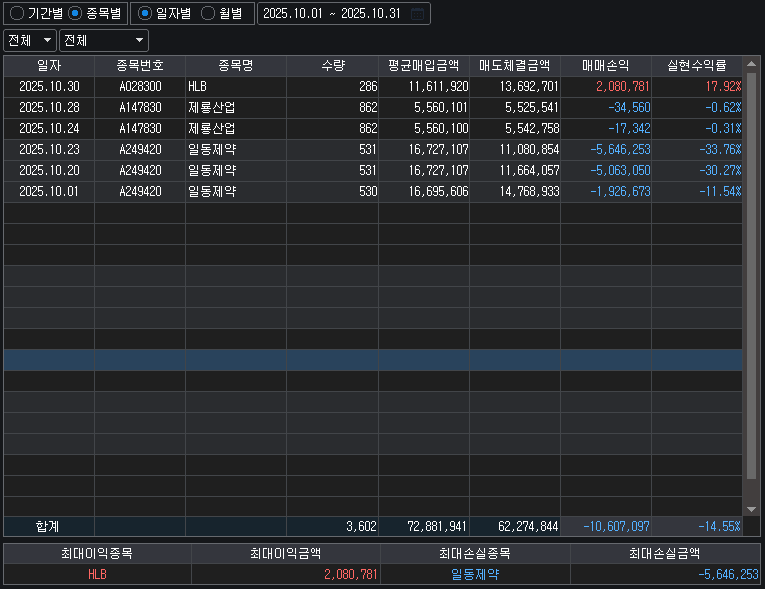 - 우선 10월에 큰 손실을 안겨준 일동제약