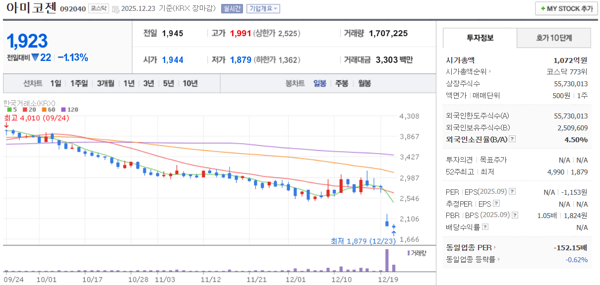아미코젠 손절. 약 - 60%