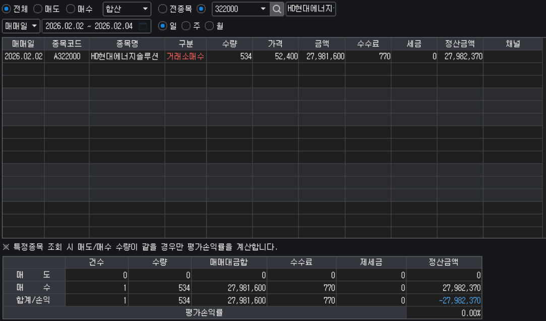이틀 전에 HD현대에너지솔루션을 매수했다.
