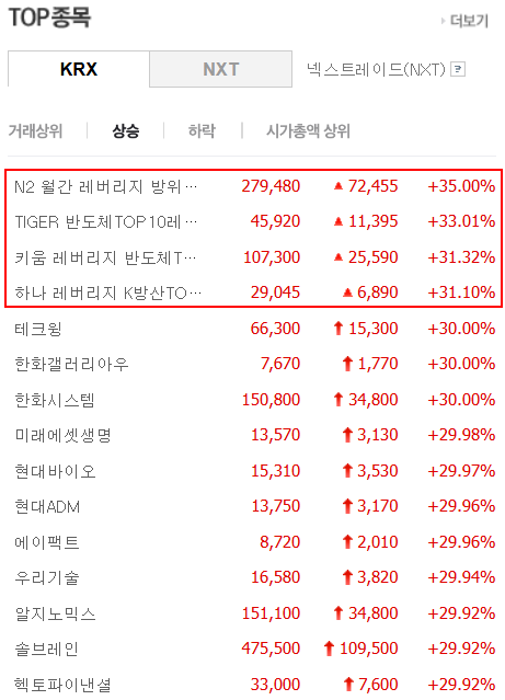 상한가를 가도 상승 상위 종목에서 종목을 볼 수 없는 현실!!!