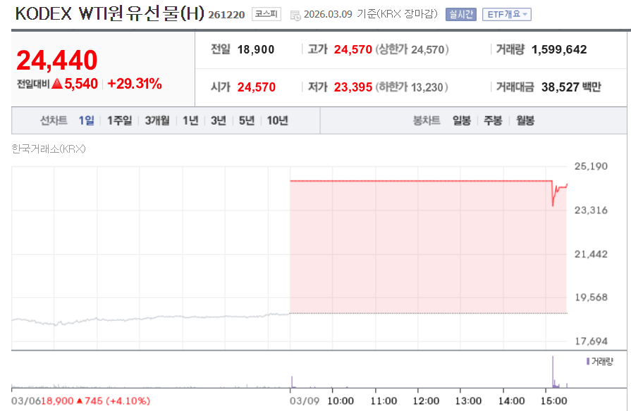 헷지용으로 투자한 ETF가 상한가를 갔다.